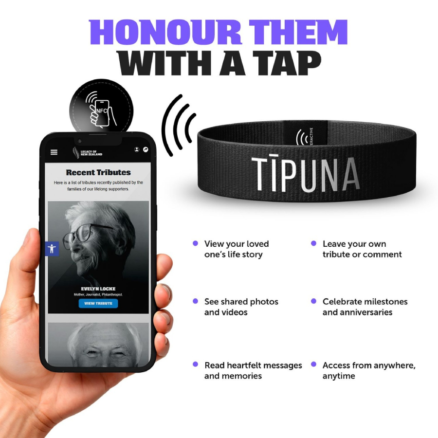 If people ask what it is for they can tap their mobile phone off your wrist and see the life story of your loved one. If you have more than one loved one remembered on the New zealand Tribute site then you can point the wristband to the search result page that pulls up your relatives by name. Order new wristbands anytime for you or for friends and family and give them as thoughtful gifts.